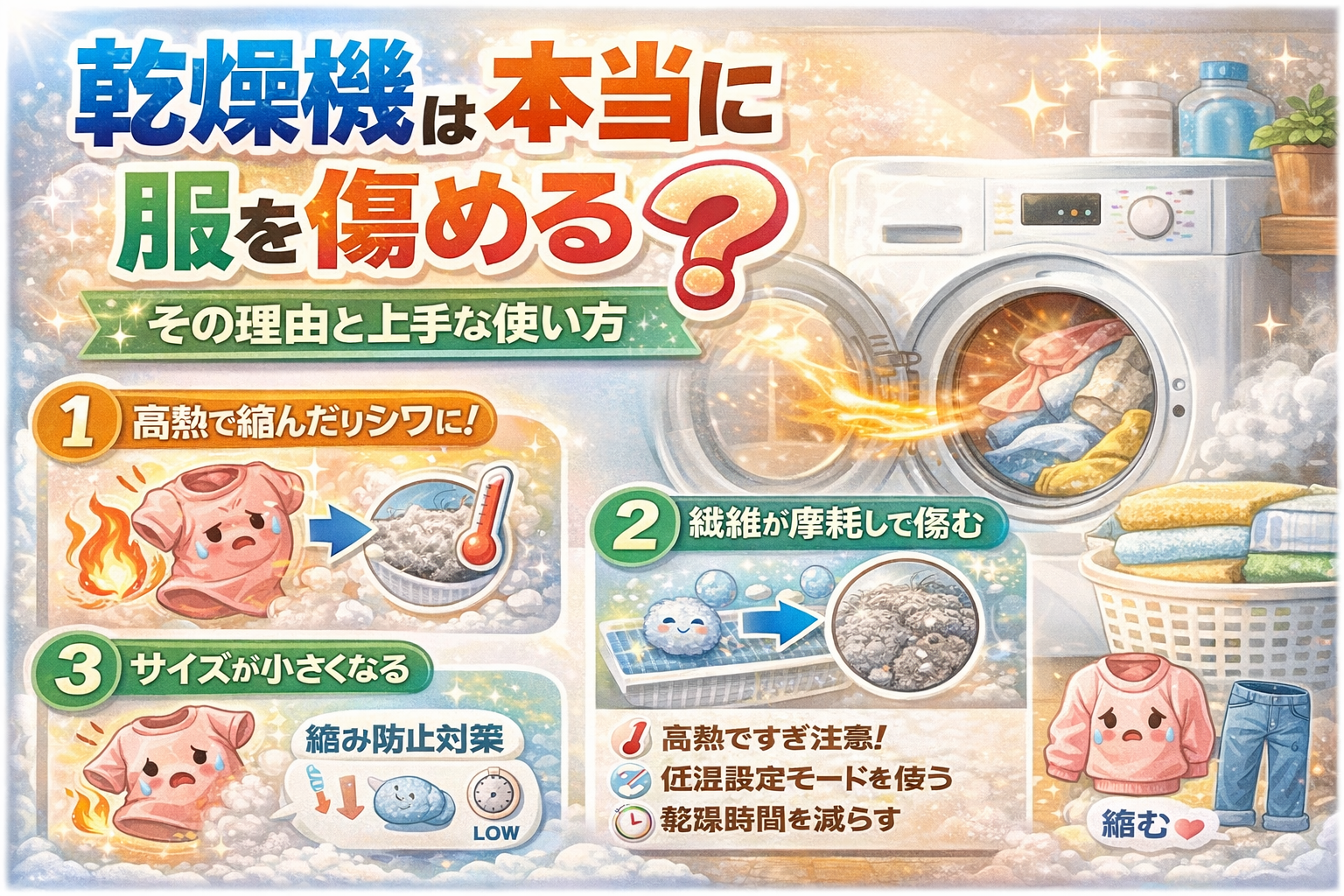 「乾燥機は服が縮む」「生地が傷む」